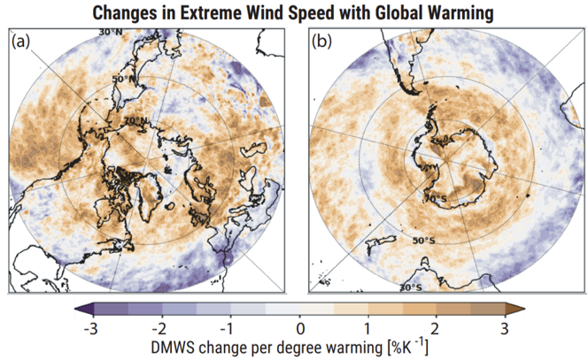 Additionally, the study identifies specific regions, such as Northwestern Europe, the British Isles, and the West Coast of North America, as areas of heightened concern due to the amplified impacts of cyclone-associated extreme winds in a warmer climate, which in turn has socio-economic consequences.