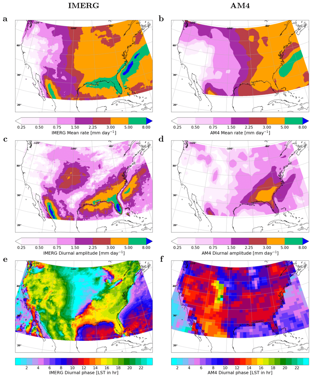 To improve the representation of the nighttime precipitation peak over the Great Plains, we used the GFDL-AM4 global climate model, developed at the Geophysical Fluid Dynamics Laboratory (NOAA). AM4 has a horizontal resolution of about 100 km and includes parameterizations for convection, clouds, and boundary-layer turbulence.