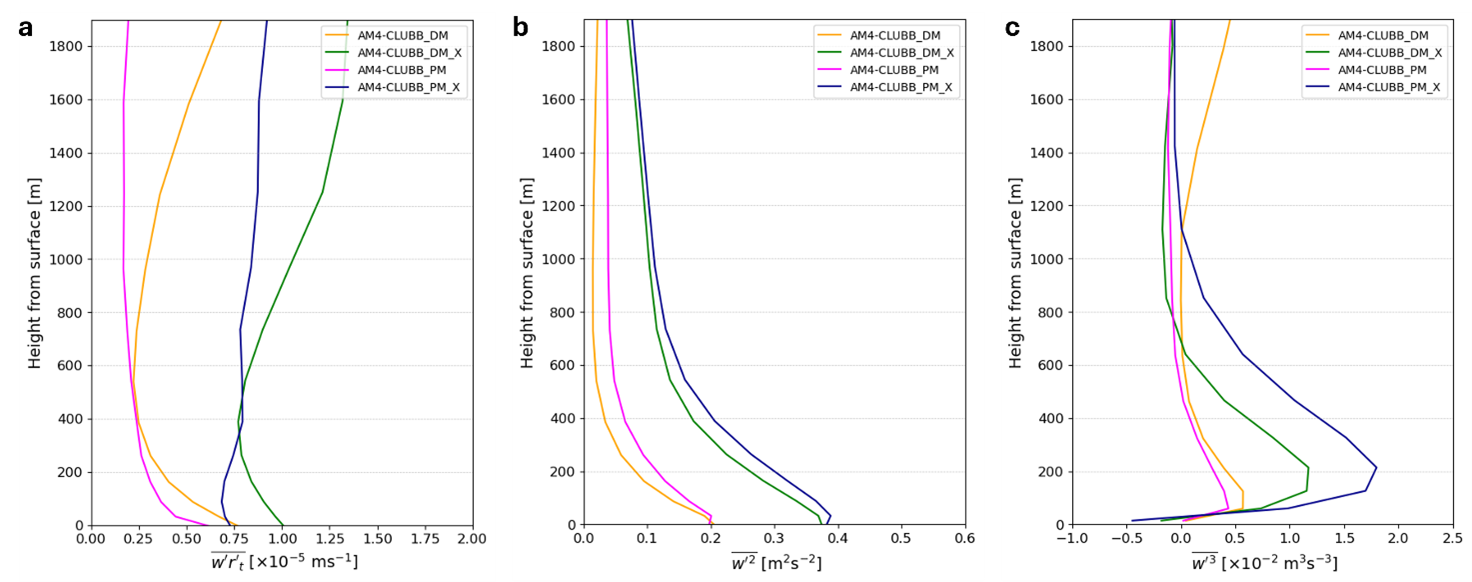 In this work, the CLUBB turbulence scheme (Cloud Layers Unified By Binormals) was extended to replace the standard AM4 parameterizations, introducing two main innovations: